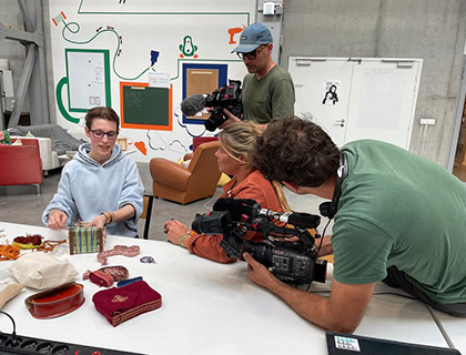 Direction ensuite l’atelier Hyperlien, au cœur du Quartier de la Création. Dans ce FabLab ouvert à tous, les idées prennent forme grâce aux outils et machines mis à disposition. Julie y rencontre les membres du Humanlab de l'APAJH 44, des bénévoles inventifs qui conçoivent des objets sur mesure pour faciliter le quotidien de personnes en situation de handicap.